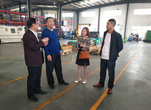 吴学斌、郑红霞一行首先到盛华集团机加工厂区进行调研,刘成刚经理介绍了该公司各种数控车床设备、操作系统、产品等情况,双方就数控专业学生的实习、就业等问题进行了交流。