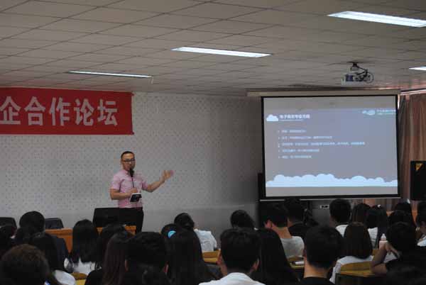 在全国职业教育活动周期间,经济贸易系开展了校企合作论坛活动。5月12日上午,邀请新龙集团电子商务部杨港总经理为电子商务专业162名在校生做《电子商务行业分析》主题讲座。